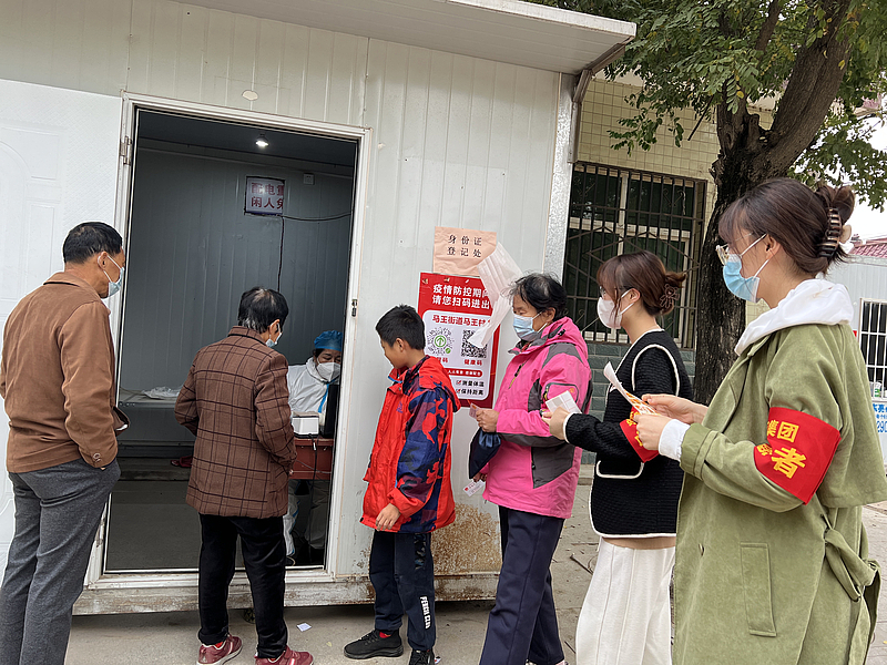 在核酸檢測過程中,志愿者們按照統(tǒng)一安排,提早到達(dá)馬王村采集點(diǎn)工作崗位,布置核酸檢測場地,按照責(zé)任分工迅速進(jìn)入工作狀態(tài),維持現(xiàn)場秩序、提醒群眾戴好口罩、引導(dǎo)群眾有序排隊(duì),用耐心和微笑堅(jiān)守著崗位,在一次又一次的掃碼和測溫中,主動(dòng)當(dāng)好防疫站線上的“螺絲釘”,彰顯青年志愿者的奉獻(xiàn)與擔(dān)當(dāng)。