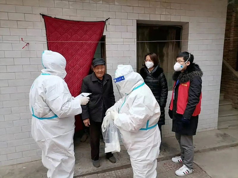 “鄉(xiāng)黨,家里還有沒(méi)有菜,買菜方便不?”“最近身體怎么樣,吃的常用藥還有沒(méi)有?”“家里幾口人,有沒(méi)有需要上門做核酸的?”灃西集團(tuán)下沉干部的敲門聲在灃西新城大王、馬王街道各村“此起彼伏”,臘月寒冬,往日熱鬧的村子如今十分安靜,各家各戶大門緊閉,一場(chǎng)“敲門行動(dòng)”正在進(jìn)行中。