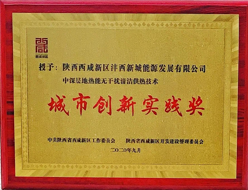 中深層地熱能無干擾清潔供熱技術榮獲西咸新區城市創新實踐獎