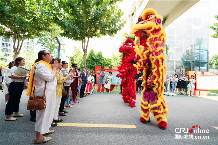 隨后,極具陜西特色的腰鼓表演又讓駐華大使夫人們眼前一亮。孩子們颯颯的身姿,紅紅綢帶舞得虎虎生風。伴隨著鏗鏘有力的鼓點,駐華大使夫人們也跟著打起拍子,各個躍躍欲試,拿起鼓槌敲起腰鼓。